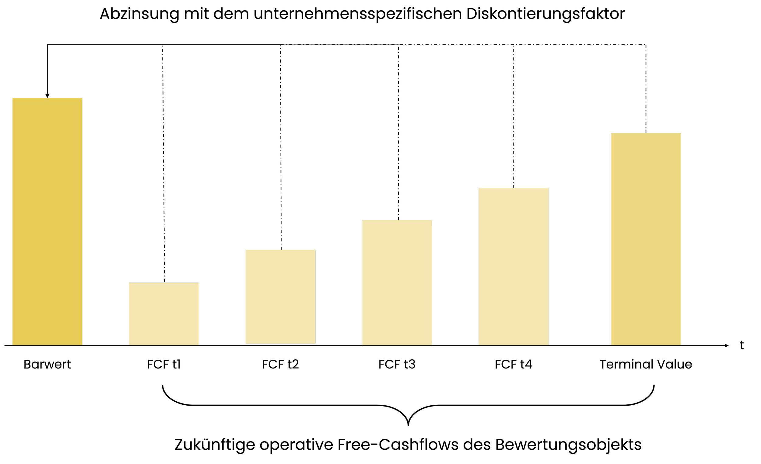Das DCF-Verfahren beruht also auf der Grundannahme, dass ein Euro heute mehr wert ist, als ein Euro morgen und dass ein risikofreier Euro mehr wert ist als ein risikoreicher.