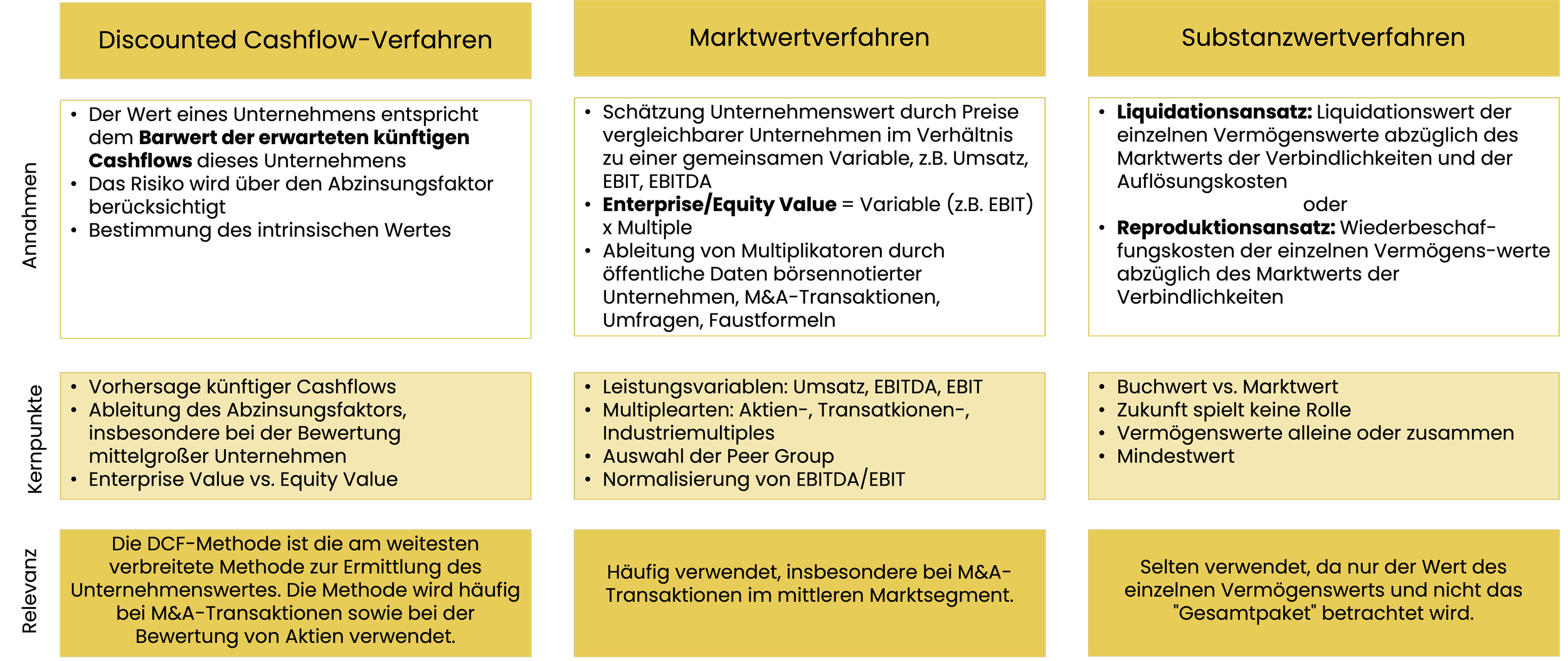 Übersicht über die Methoden zur Unternehmensbewertung
